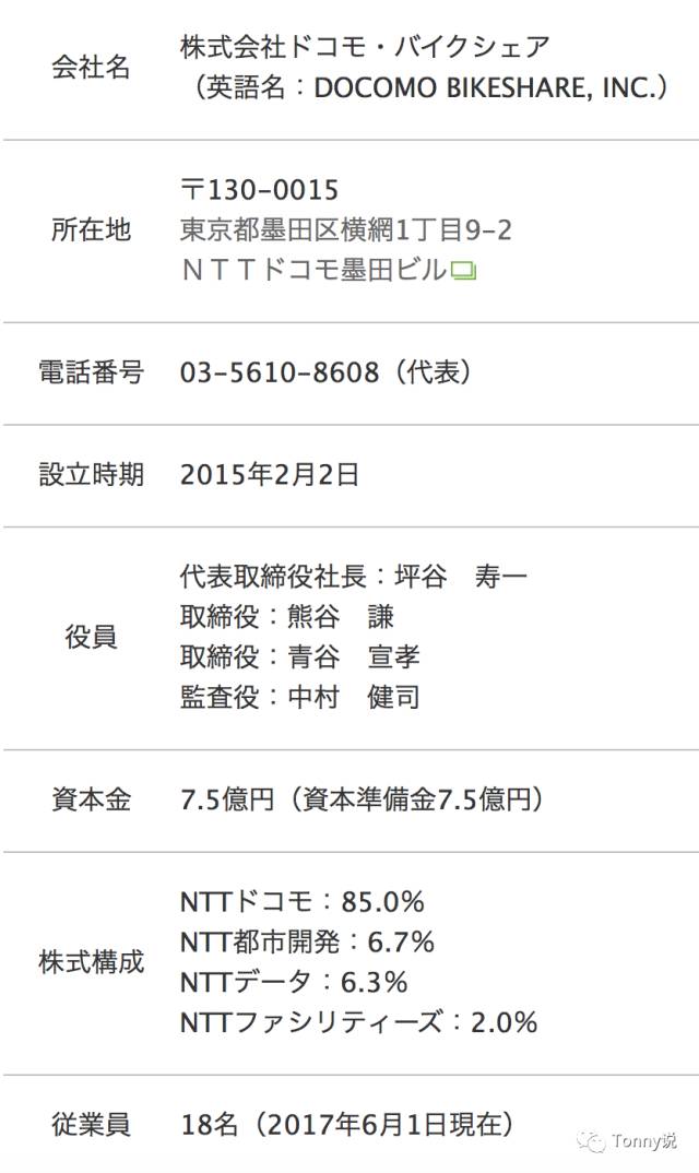 差不多和摩拜ofo同时起步成立公司,还带着多年的经验和研究成果出发的 docomo bike share,起步时10个员工,2年过去了,有超级爷爷公司,爸爸公司的支持,结果依然只有18个员工!